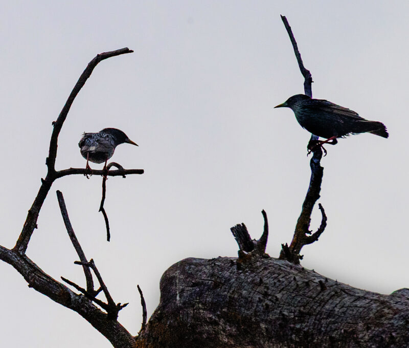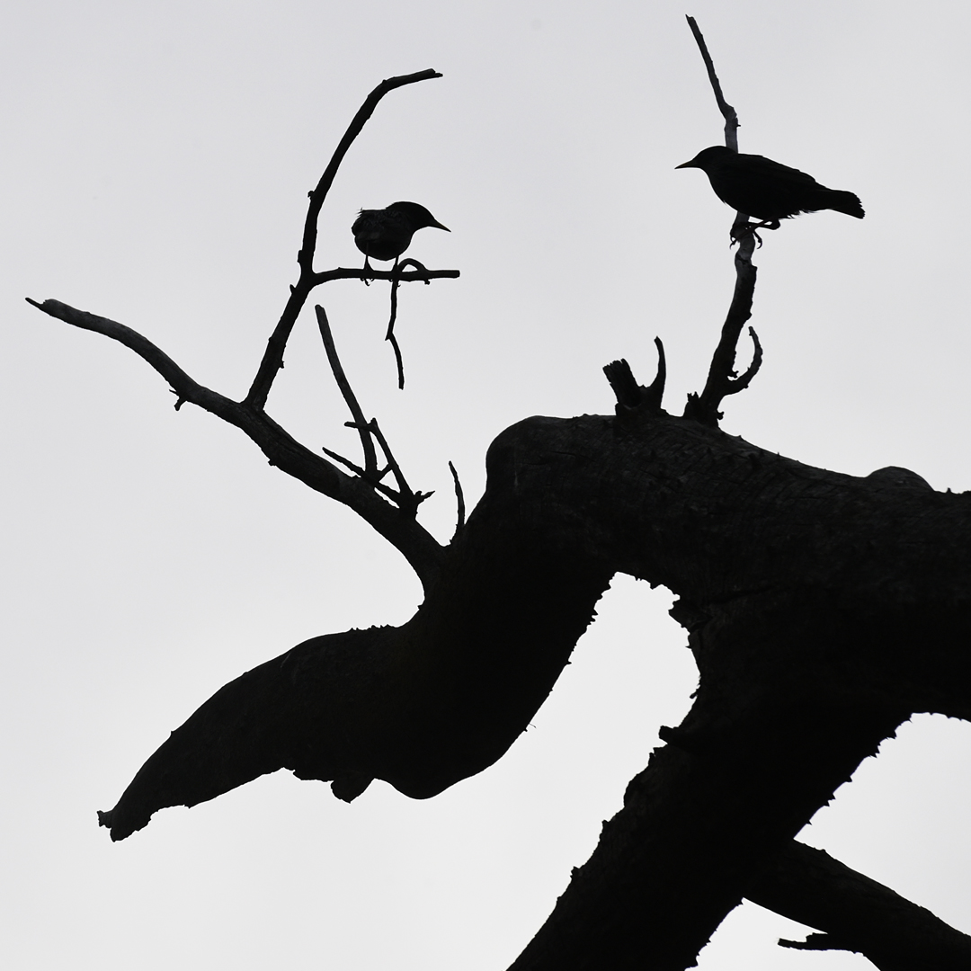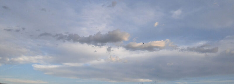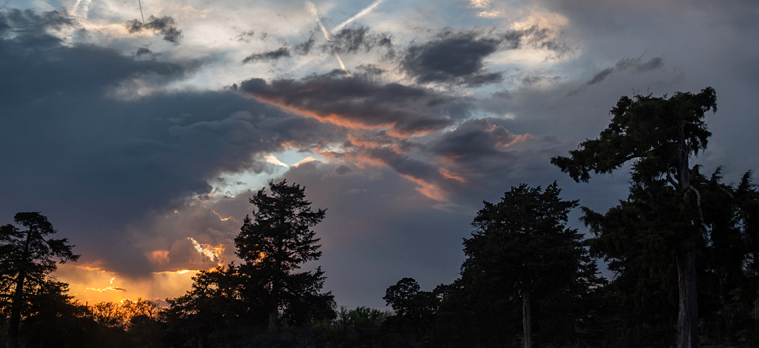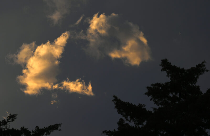 Two birds, clouds and a sunset